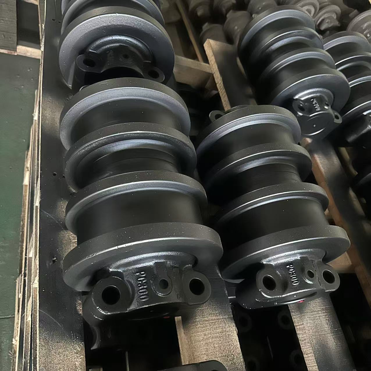 Professional production of excavator track roller support wheels for various models.